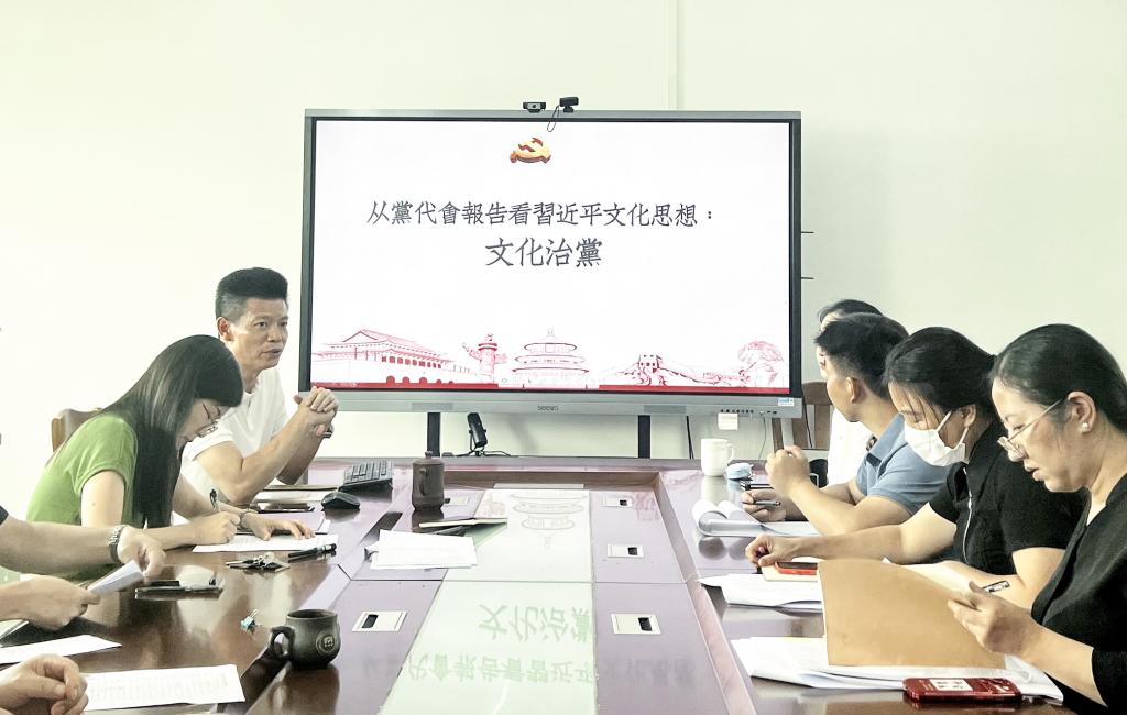 为推动学习贯彻习近平新时代中国特色社会主义思想主题教育走深走实,6月15日,公司党委按照公司党委主题教育统一安排,在东校区第一教学楼1411室召开公司党委理论学习中心组扩大会,公司党委书记黄文浩作《从党代会报告看习近平文化思想:文化治党》中心发言,全院教职工参加了会议。